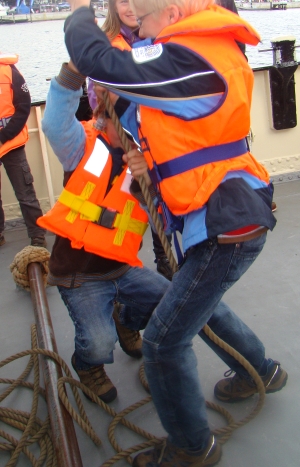 dem Schiff. Wenn man möchte, darf man auch mit anpacken! |